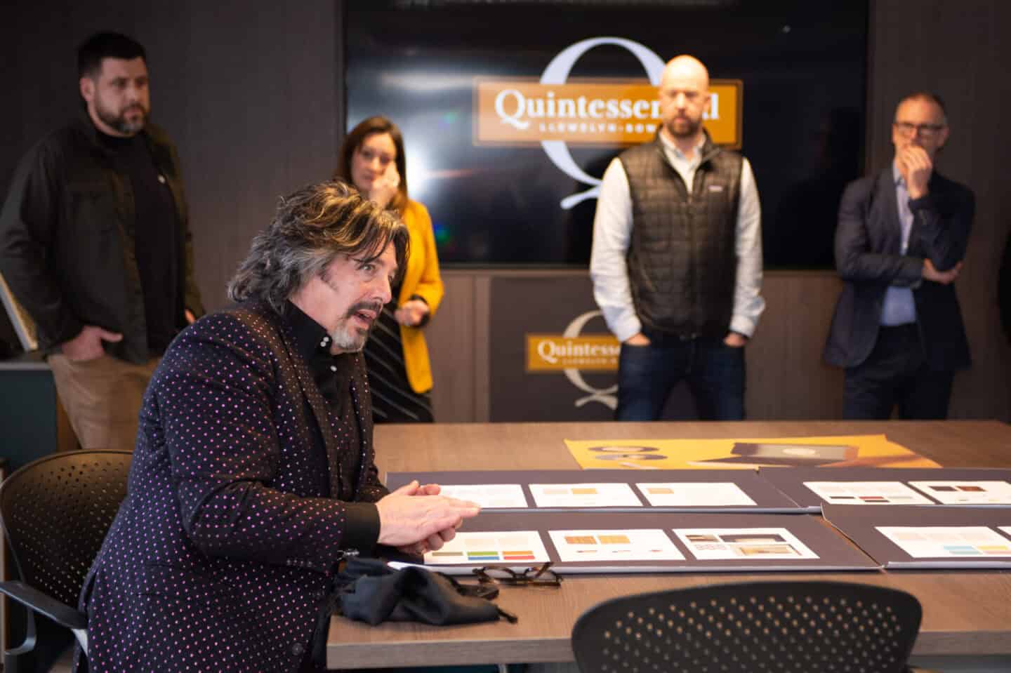 Laurence Llewelyn-Bowen took to the floor with his trademark theatrical flair — part raconteur, part design evangelist — welcoming guests with a candid introduction to the inspiration behind the Quintessential range. His opening remarks were met with smiles, note-taking and more than a few goosebumps.